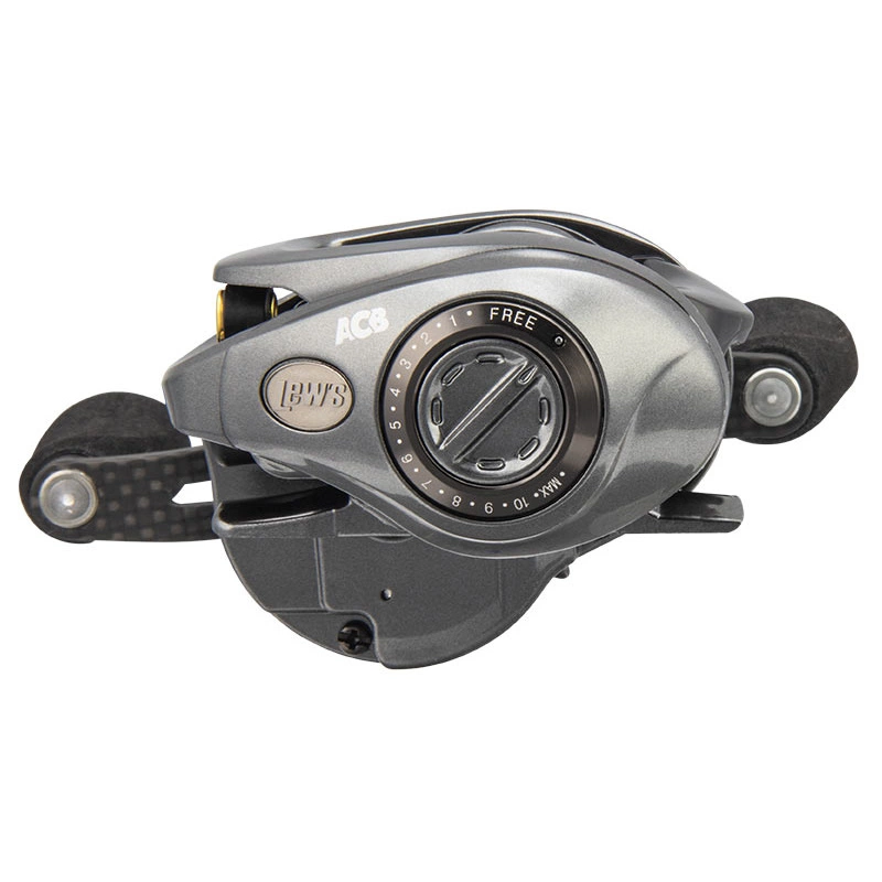 Weighing in at just 4.9 ounces, the Custom Lite SLP baitcast reel is the lightest reel ever produced by Lew’s. The Custom Lite SLP features a proprietary Tanso Tech™ frame and a titanium, anodized aircraft-grade Duralumin 30mm spool that can pick up 28” of line per handle turn. On the engineering side, this piece of equipment features an 11-bearing system with Lews’ P2 Super Pinion™, which provides better gear mesh for smoother cranking, longer casts and extended gear life. Matched with the externally adjustable 6-pin, 27-position QuietCast Adjustable Centrifugal Braking (ACB) system, the bowed, lightweight 95mm carbon fiber handle with EVA paddle knobs keeps things light and comfortable while on the water. • Bearings 10+1• Gear Ratio 7.5:1• One-piece proprietary Tanso Tech™ frame with strong, lightweight C45 carbon sideplates with 3 built in drain ports • Titanium anodized aircraft-grade Duralumin drilled U-shape 30mm spool • Hard aluminum alloy Speed Gears®, cut on Hamai CNC gear hobbing machine • P2 Super Pinion™ bearing supported pinion gear provides precise alignment and solid stability, resulting in smoother operation and extended gear life • Premium 11-bearing system with double-shielded stainless steel ball bearings and Zero Reverse® one-way clutch bearing• Externally adjustable 6-pin 27 position QuietCast Adjustable Centrifugal Braking system (ACB) • External lube port • Titanium anodized aluminum spool tension adjustment with audible click • Rugged carbon fiber drag system provides up to 20lbs. of drag power • Bowed lightweight 95mm carbon fiber handle with lightweight EVA paddle knobs • Titanium anodized bowed aluminum drag star with audible click adjustment • Titanium coated Zirconia line guide • Exclusive patented Speed Dial® line indicator