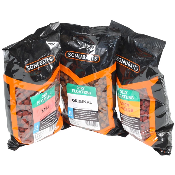 A hookable floating fishmeal pellet that has been impregnated with fish oil to provide a slick that fish home in on. With the increased level of oil and a slightly softer texture, these oily floaters are ideal for presenting on a hair rig or side hooked. Packed in a handy resealable bag.