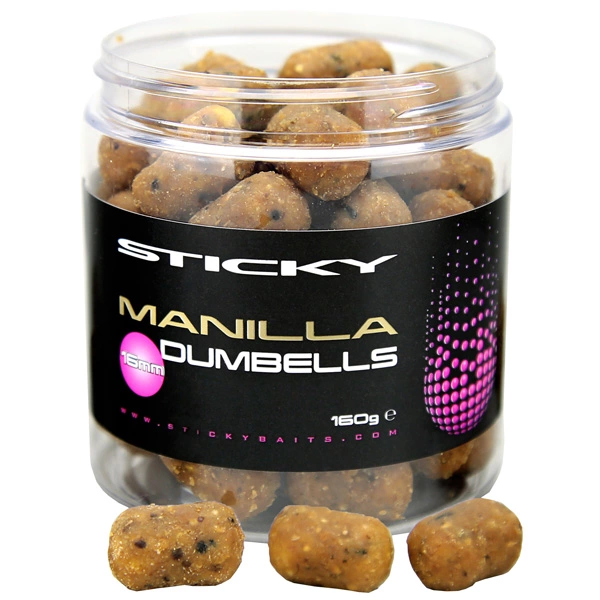 Designed to replicate Manilla Boilies, these hookbaits are made using the same base-mix with added soluble attractors. They come with extra soluble coating to maximise their leakage and attraction. Manilla Dumbells make an ideal alternative hookbait for fishing over the Manilla Pellets and Manilla Active Mix. As well as this, they are also a superb choice for stalking and short sessions as they get to work straight away. 160g tub.